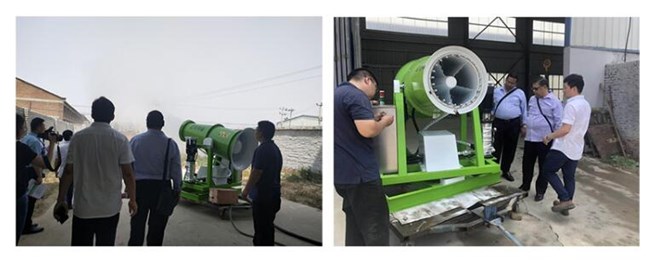 利用超高壓泵將水加壓至40公斤以上,經(jīng)過(guò)高壓管路至高壓噴嘴霧化,霧滴的直徑僅為10-50um這些微小的霧化顆粒能長(cháng)時(shí)間漂浮在空氣中漂浮在空間,由空氣分解,它們具有較強的表面活性和吸附能力對懸浮在空氣中的粉塵—— 別是直徑在5微米以下的可吸入顆粒進(jìn)行有效的吸附,使粉塵受重力作用而沉降,從而達到抑塵作用。