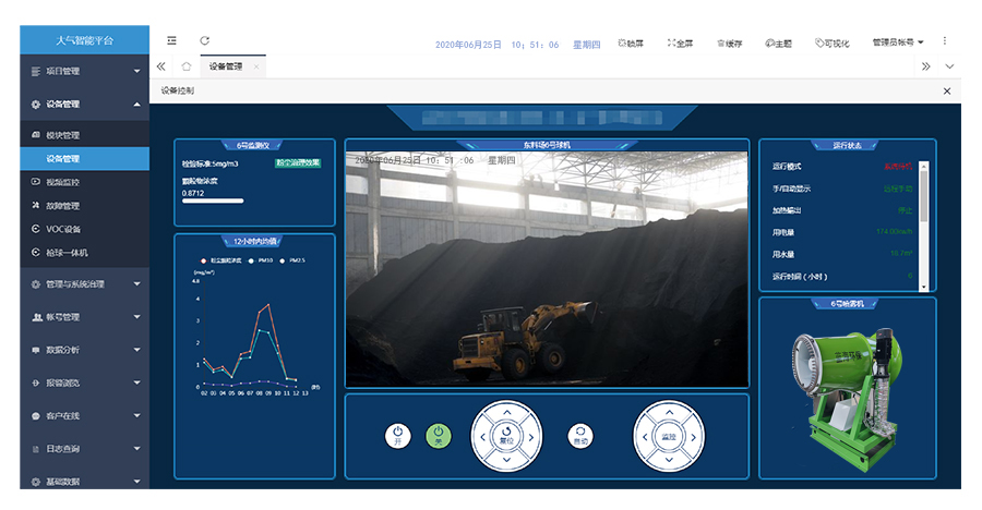 空氣質(zhì)量監測數據可以和揚塵控制系統聯(lián)動(dòng),當空氣質(zhì)量超標時(shí)可自動(dòng)控制霧炮、噴淋等啟動(dòng)工作。