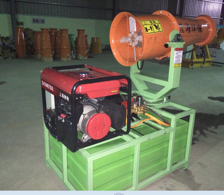 這種長(cháng)得像“大炮”的威風(fēng)凜凜的大家伙,發(fā)射出的不是炮彈,是通過(guò)利用風(fēng)機將水轉化成細小顆粒的水霧,噴向空中后與飛起的塵埃顆粒相結合,加重顆粒塵埃的重量,使飛揚的塵埃無(wú)法飄散而被迫降落,從而有效抑制揚塵污染。