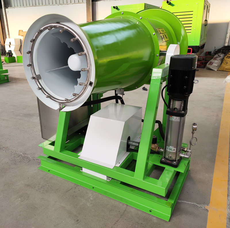 霧炮機是針對粉塵污染,依靠使用大風(fēng)率風(fēng)機將水霧化成50-200微米大小水霧氣,噴灑到粉塵中,使其和粉塵結合,增加粉塵的濕度,到達降塵抑塵的作用。