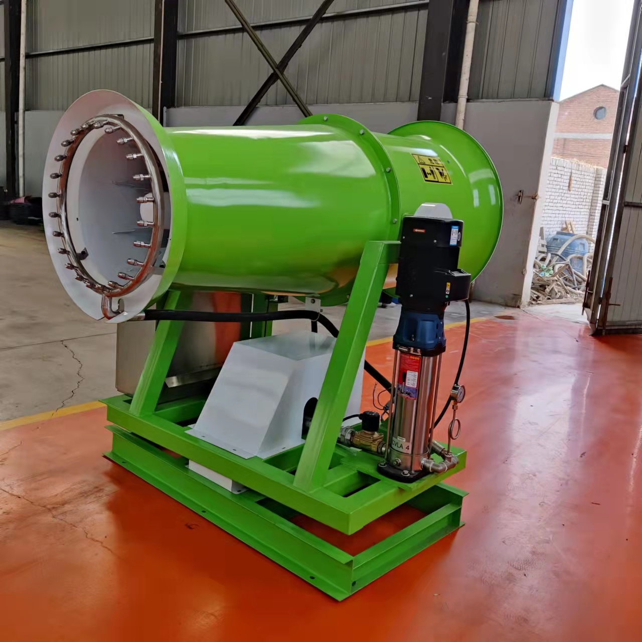 實(shí)際上,噴霧降塵系統是通過(guò)高壓泵對水進(jìn)行加壓,然后通過(guò)噴嘴將水霧化,產(chǎn)生大量細水霧顆粒,噴入空氣中,與各種細塵粒凝聚,在重力作用下實(shí)現降塵效果,從而達到凈化空氣、清新空氣的效果。