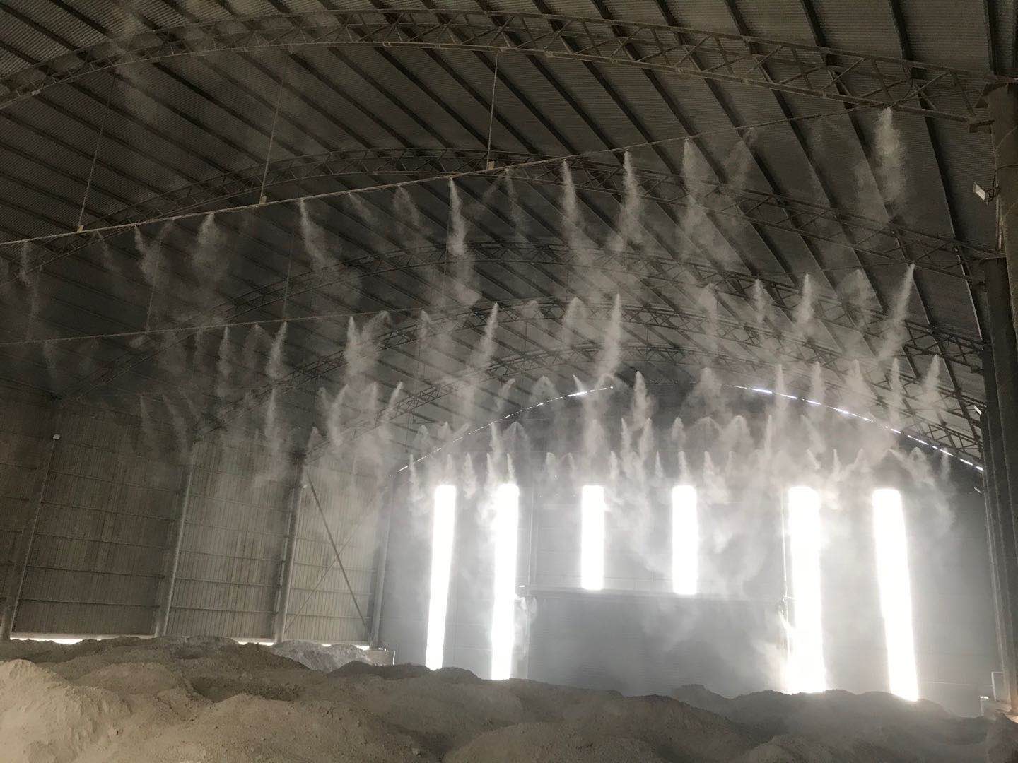 噴霧降塵的基本原理就是將水霧化與粉塵顆粒淋濕,使其顆粒和比重增大,從而吸附灰塵